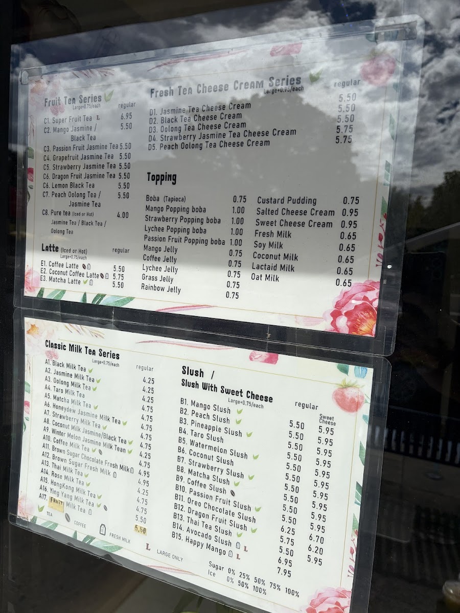 Fresh mango with whole milk, topped with rich matcha cream.Large size only.you can add on boba or popping boba and jelly.that taste so delicious!
